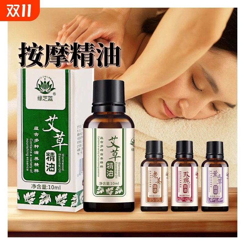 艾草生姜按摩精油疏通经络发热全身推背排毒刮痧去湿开背推拿老姜