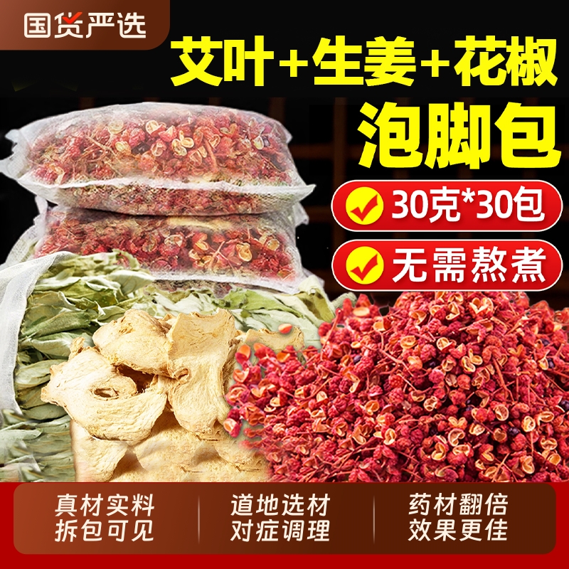 花椒生姜艾草艾叶泡脚药包祛湿气助睡眠驱寒气专用足浴包泡澡老姜