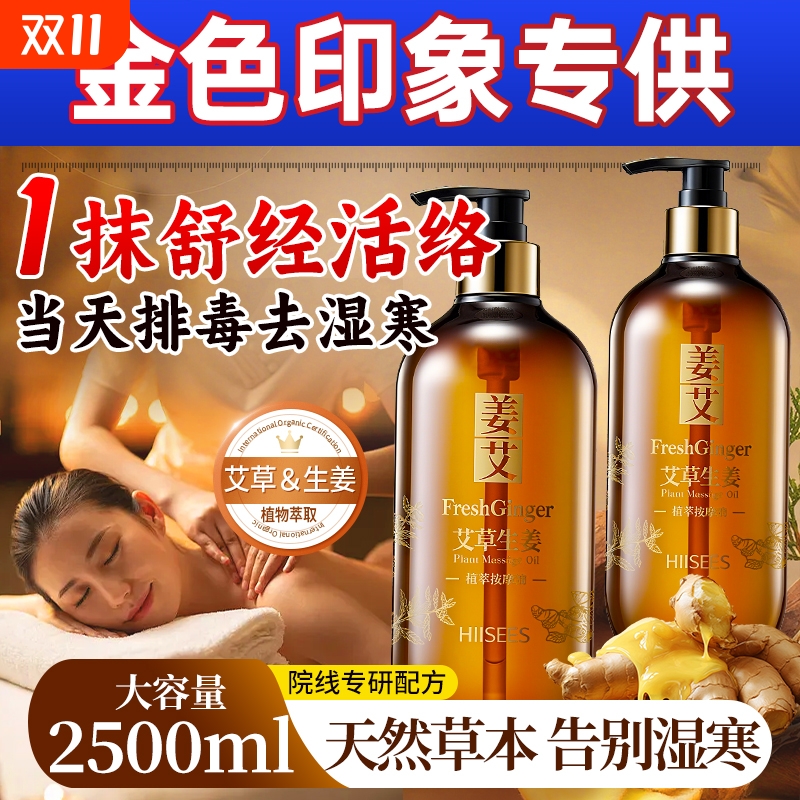 金色生姜艾草发热按摩精油全身身体通经络开背推背刮痧正品官方