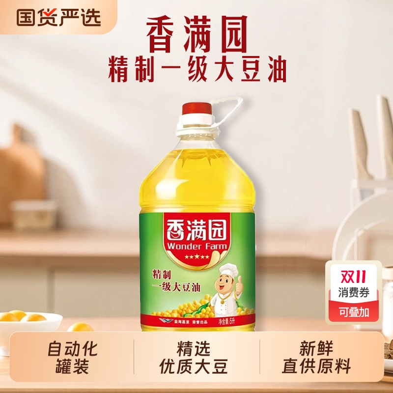 香满园转基因精制一级大豆油5L/桶煎炸炒菜家用商用食用油