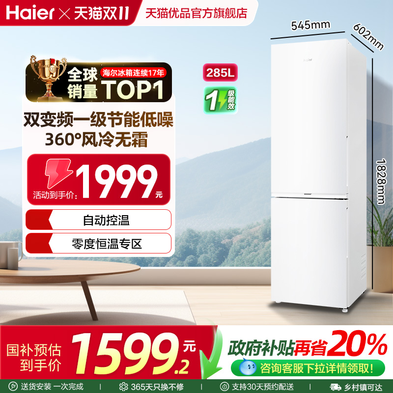 海尔一级变频无霜电冰箱两门白色
