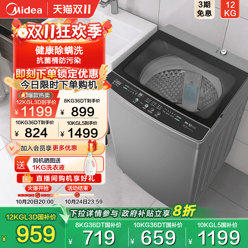 美的12kg全自动免清洗大容量波轮