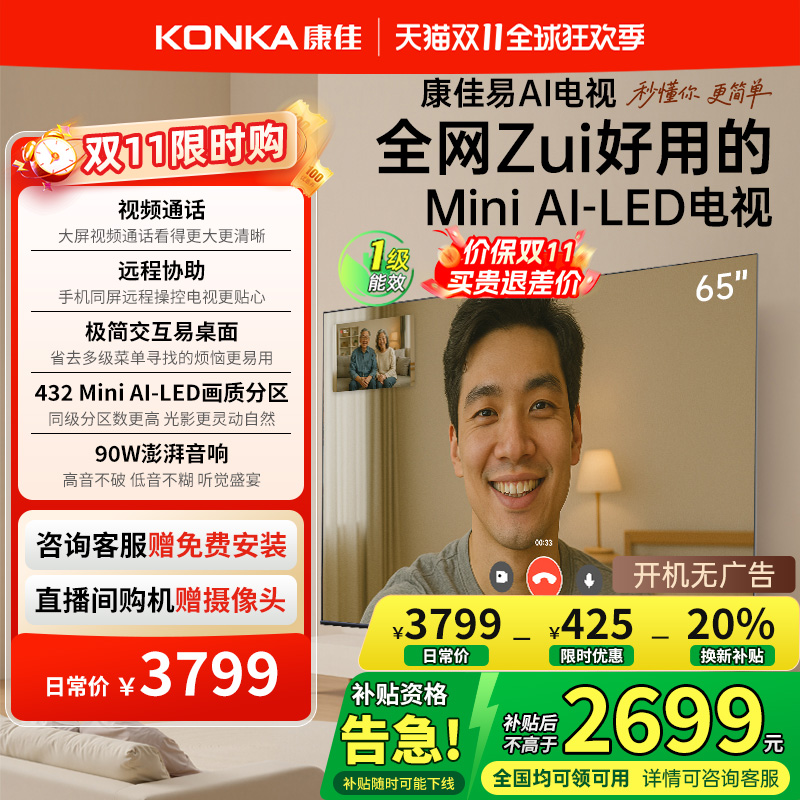 海尔国民AI电视 65英寸MiniLED液晶电视机家用以旧换新补