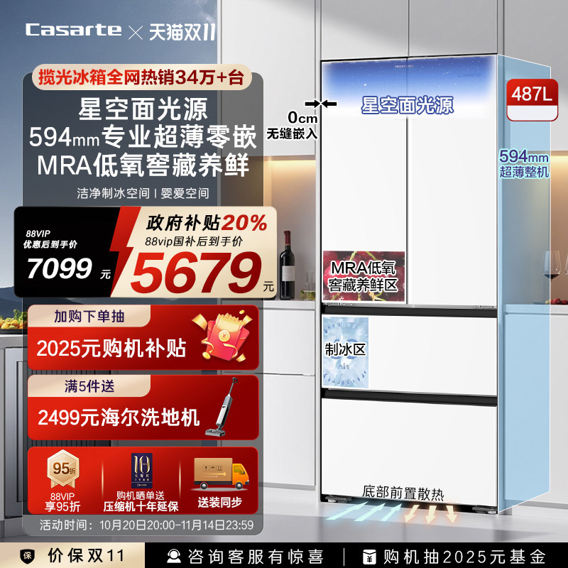卡萨帝487L超薄零嵌冰箱