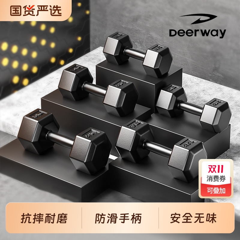 德尔惠哑铃环保包胶六角防滚动男士学生10kg*2练臂肌家用健身器