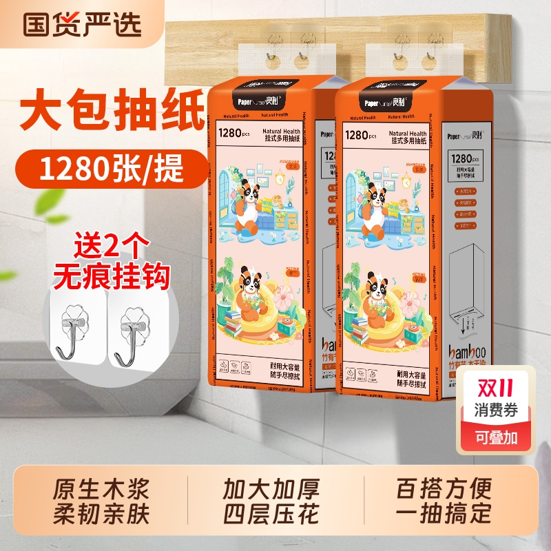 良制悬挂式抽纸挂抽面巾纸挂壁式家用卫生纸印花餐巾纸底部加厚