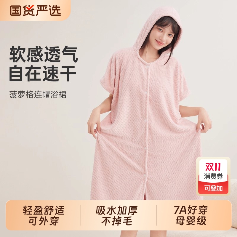 成人可穿式浴巾浴袍速干女家用夏连帽非纯棉浴裙浴衣2025新款裹巾