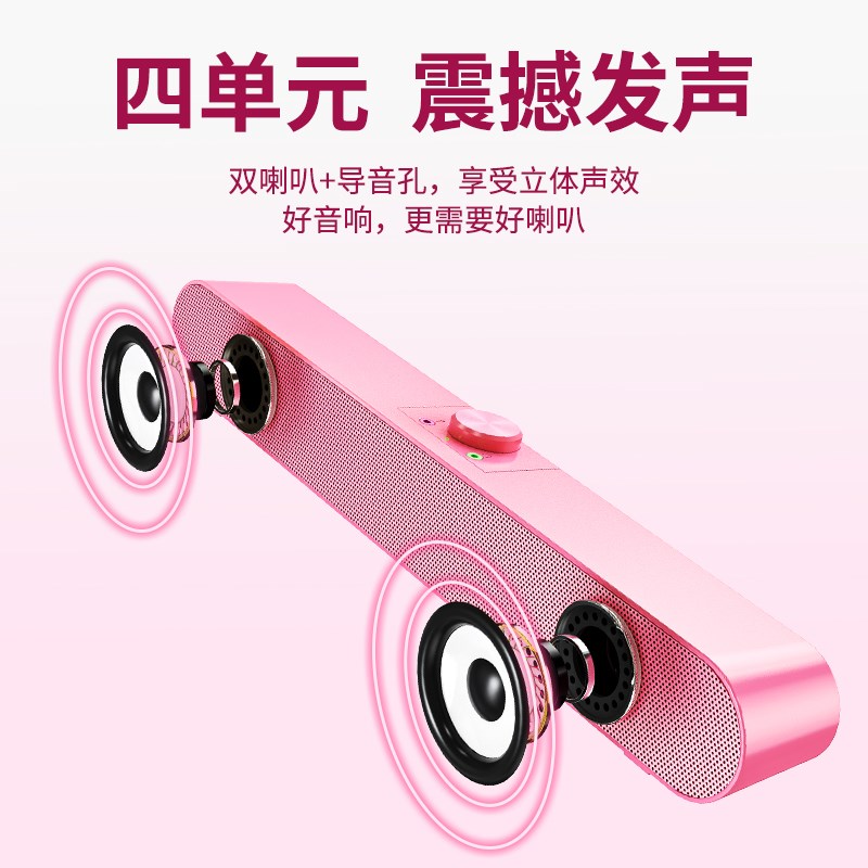 粘贴式电脑音响台式小喇叭桌面迷你低音炮隐藏式有线USB音箱家用