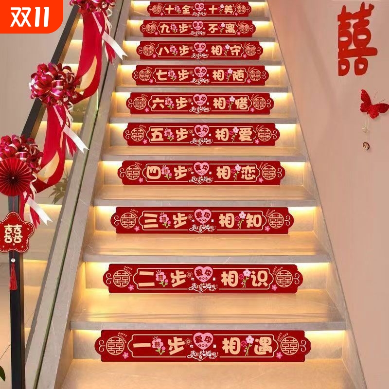 婚房布置结婚礼楼梯台阶踏步贴纸装饰扶手喜字贴套装婚庆用品大全