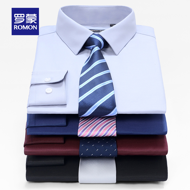 罗蒙男商务休闲时尚百搭长袖衬衫