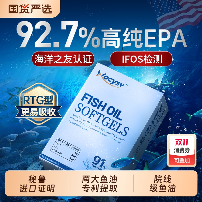Wocysv深海鱼油高EPA软胶囊正品官方旗舰店中老年降血脂om