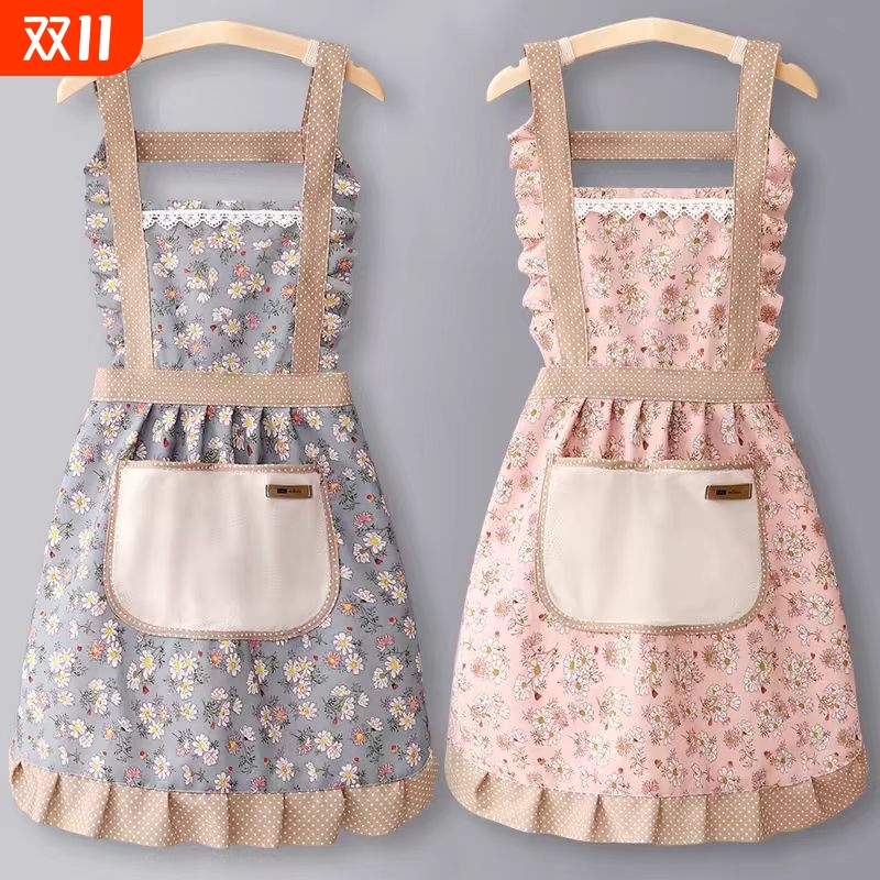 纯棉围裙厨房家用专用做饭工作服罩衣女新款护衣围腰棉麻防水防油
