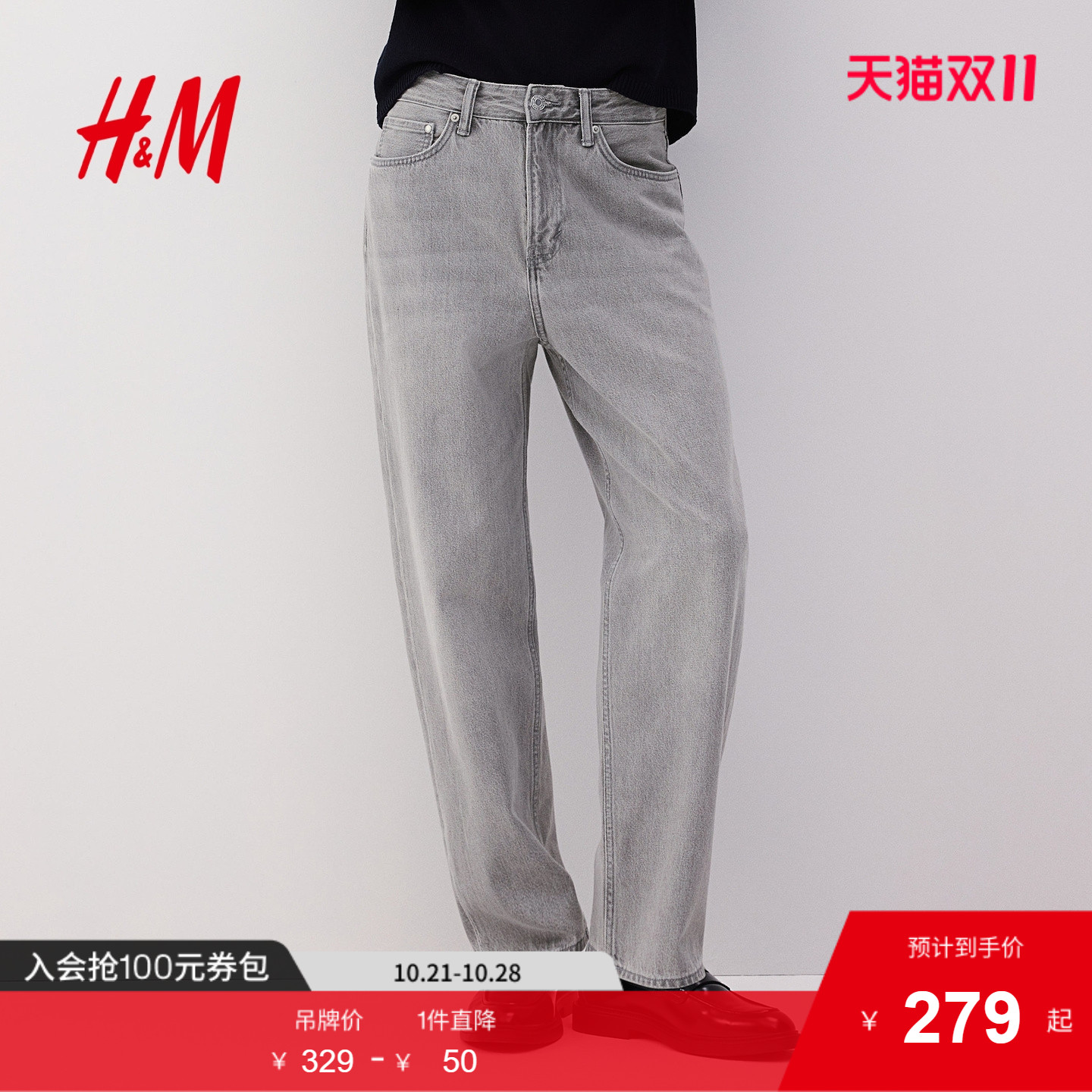 HM男装牛仔裤秋季中腰阔腿加厚棉质宽松直筒休闲裤0979945