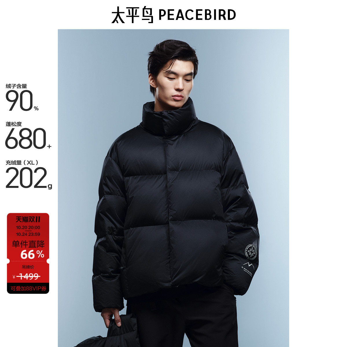 太平鸟男装 火山羽绒服面包服男短款冬季潮流黑色美式保暖防寒服