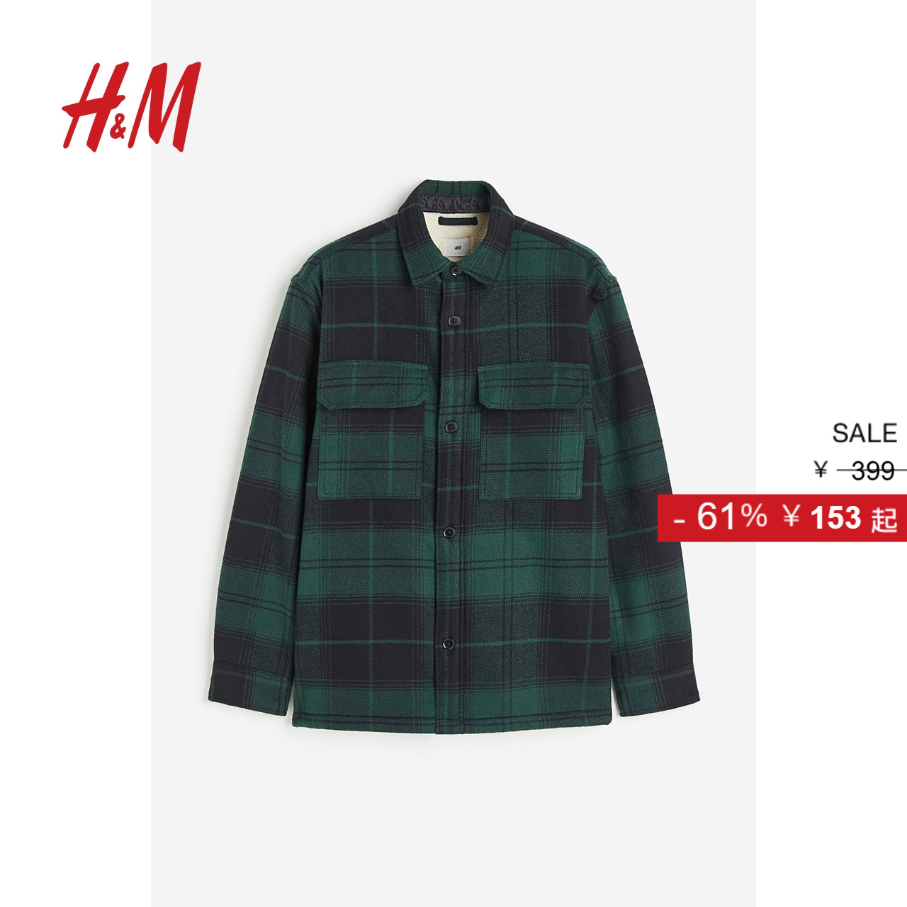 HM男装衬衫美式复古格子上衣休闲男士外套式长袖衬衣1072992