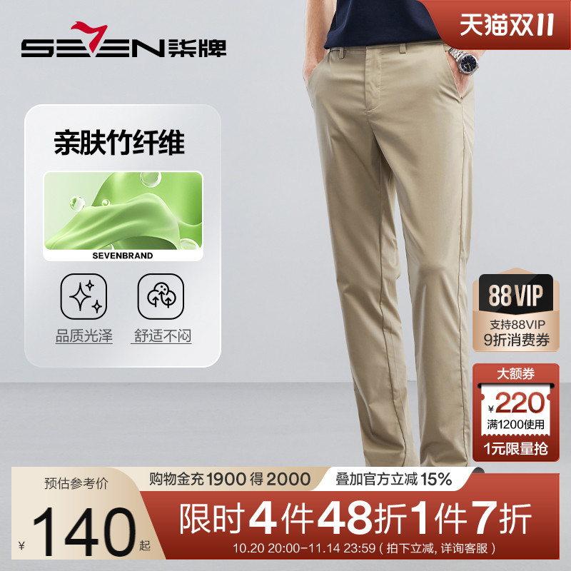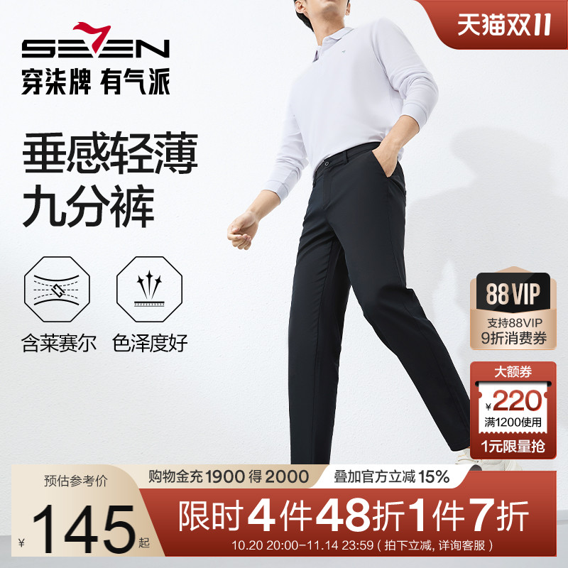 【含莱赛尔】柒牌男装休闲裤男士春季新款商务百搭直筒小脚九分裤