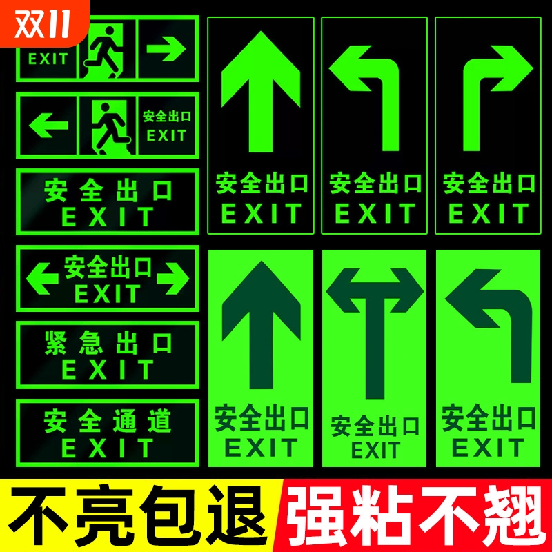 安全门标识墙贴夜光贴纸逃生门应急紧急出口标识牌指示牌引路牌安全警