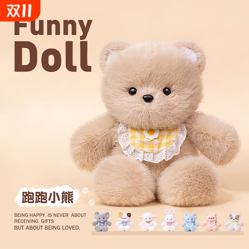会跑步的小熊玩偶跑跑三花猫娃娃公仔兔毛绒玩具抱枕女生生日礼物