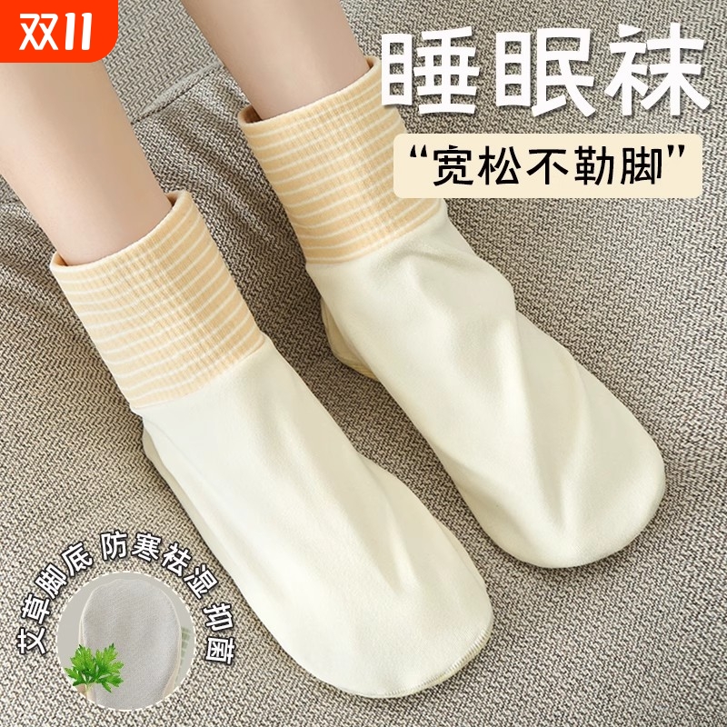 晚上睡觉穿的袜子女宽松不勒脚睡眠专用袜大码艾草空调保暖地板袜