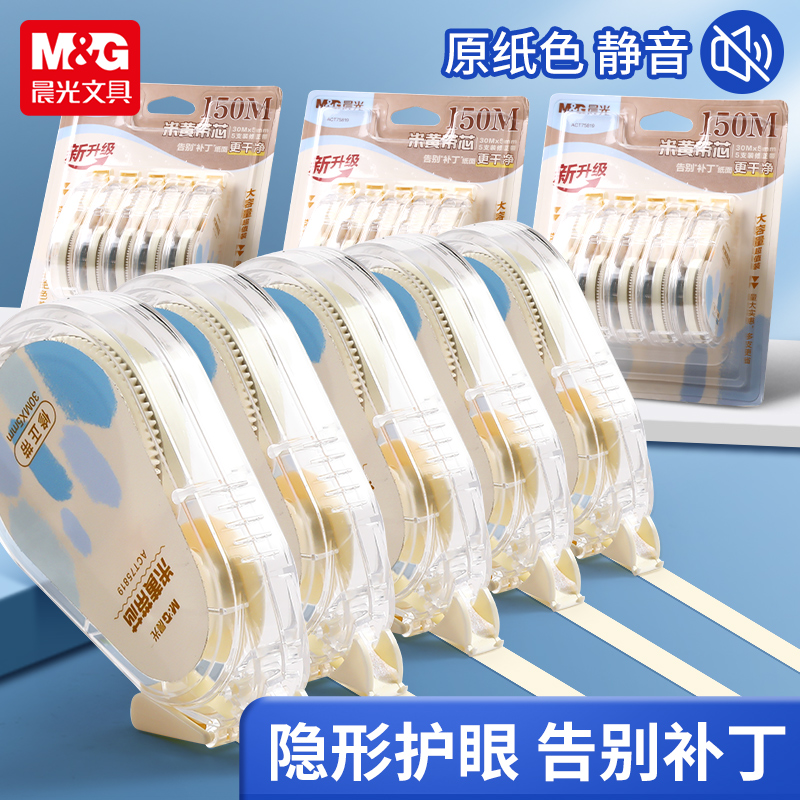 晨光护眼色修正带小学生专用大容量米黄原纸色隐形带静音涂改带改正带
