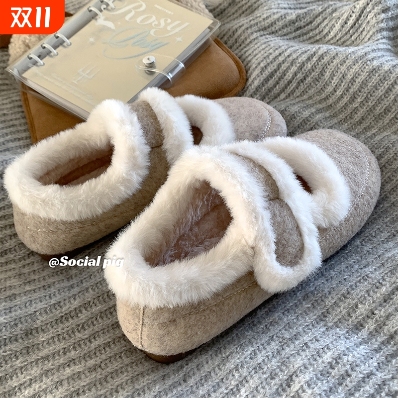 秋冬奶呼呼的韩系穿搭~魔术贴棉鞋女冬加绒毛毛鞋保暖玛丽珍单鞋