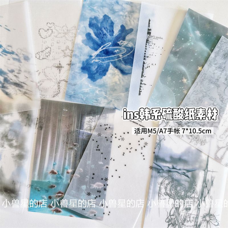 原创韩系ins蓝色朦胧硫酸纸创意素材纸手账拼贴便签礼物 打底背景