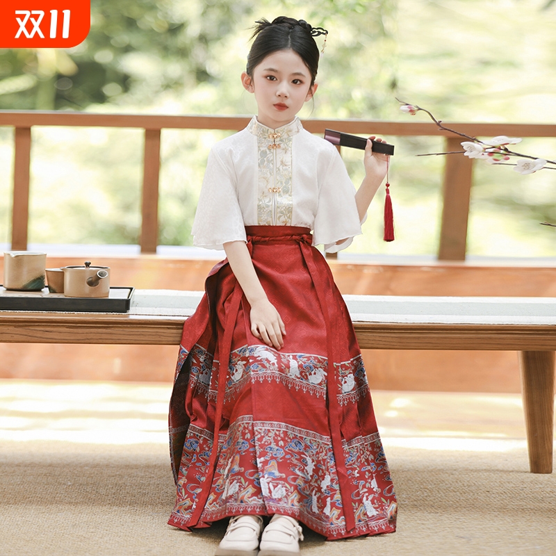 女童马面裙套装2024新款秋冬儿童新中式国风唐装高端古装裙子秋季