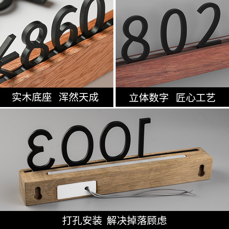 1订做订制牌子木质民宿数字门牌包厢发光门O牌美观木牌标识牌房间