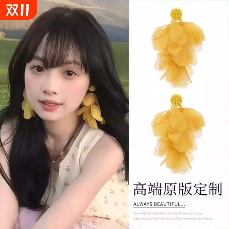 奶fufu的~度假风黄色花瓣适合夏天的耳环方圆脸2025新款拍照