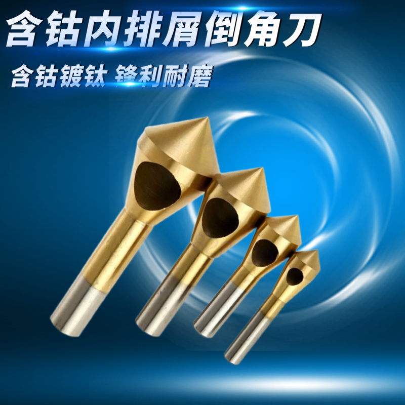含钴镀钛带孔内排屑倒角刀90度倒角器沉头钻沉孔钻头不锈钢倒角钻