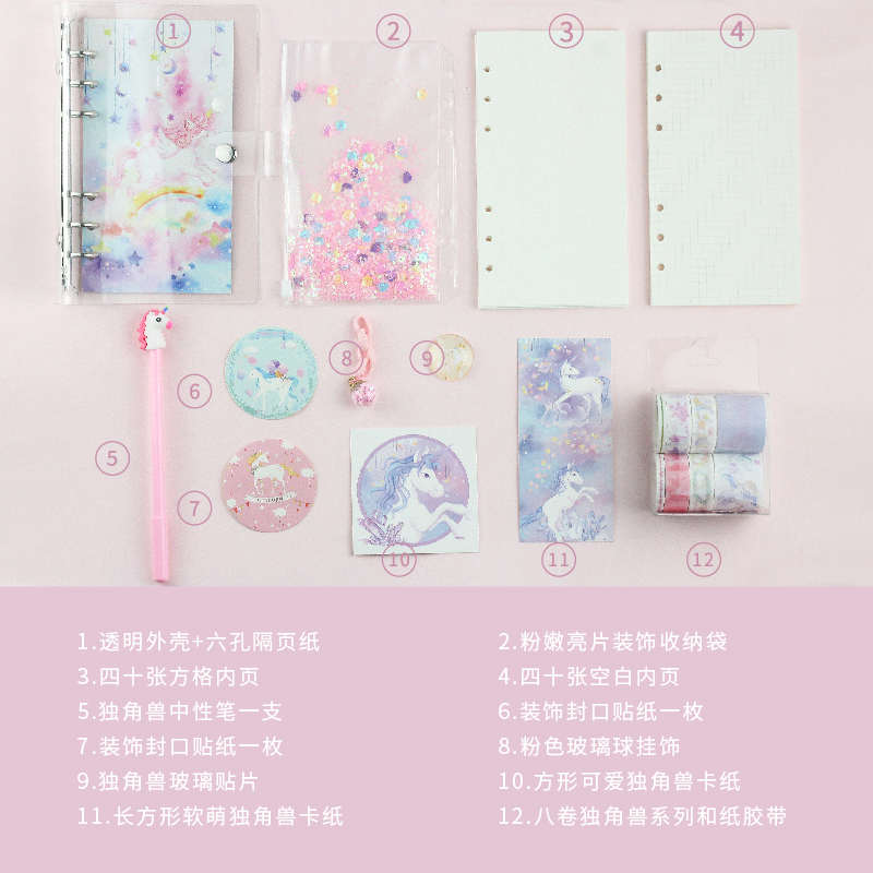 活页日式星空手账本水晶少女心可爱流沙网红手帐本套装手杖笔记本