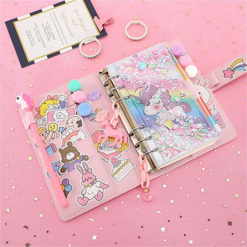 闺蜜手账c本少女心流沙手账本套装活页梦幻可爱流沙笔记本入油胶