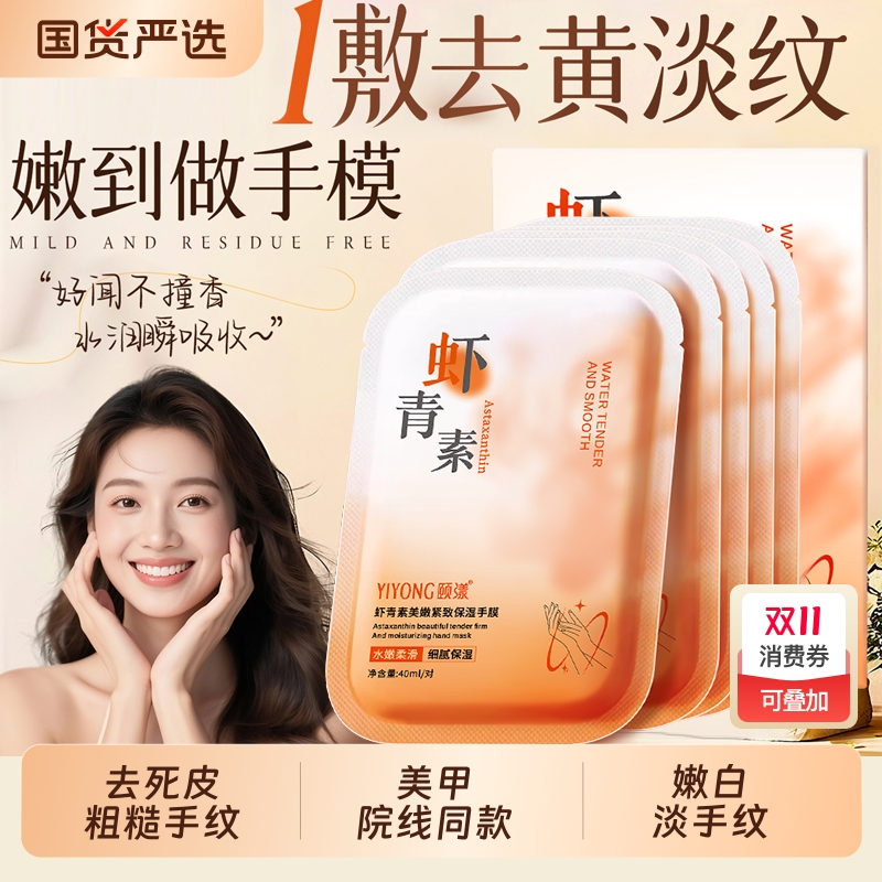 虾青素手膜嫩白去黑保湿补水滋润手部护理修复干裂粗糙淡化手纹套