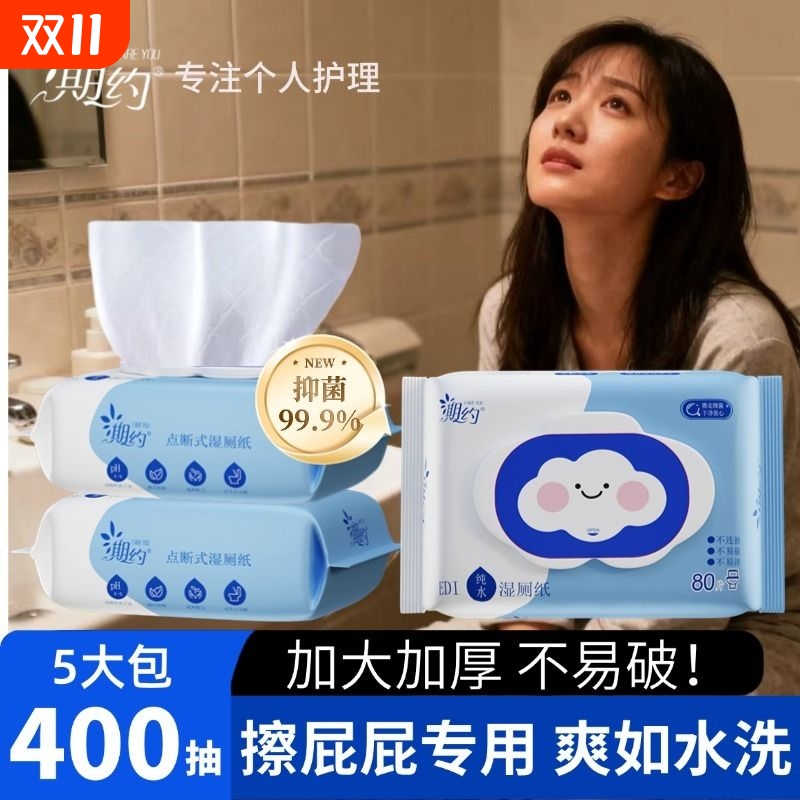 期约湿厕纸可冲厕纸擦屁屁湿巾纸擦屁股女士私处湿纸巾家庭实惠装