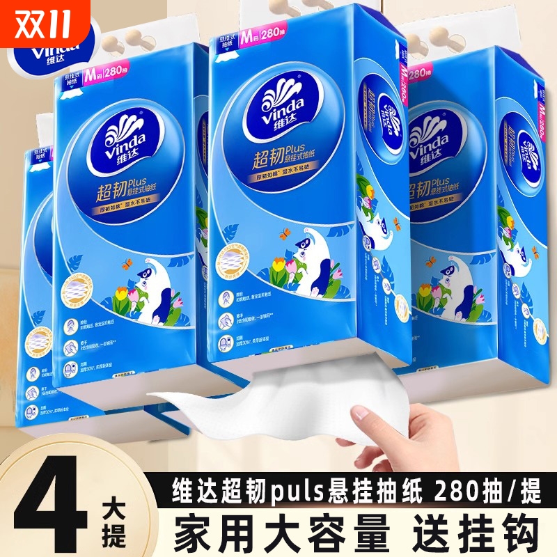 维达超韧悬挂抽纸3层加厚可湿水家用自然无香卫生纸餐巾纸面巾纸