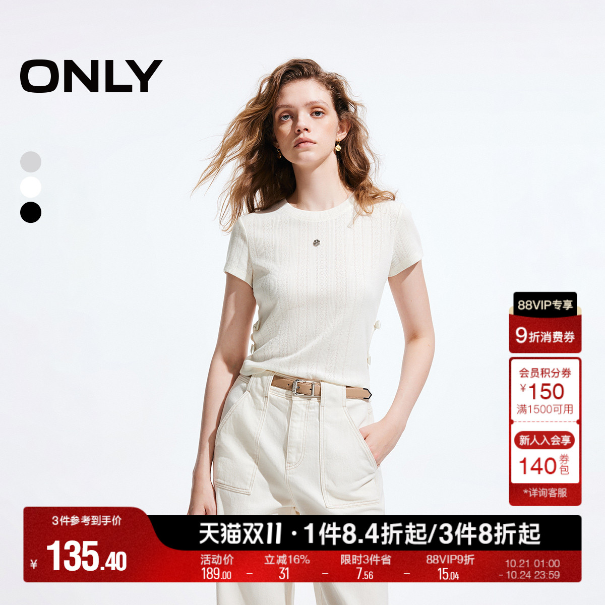 ONLY设计感蝴蝶结短款短袖T恤