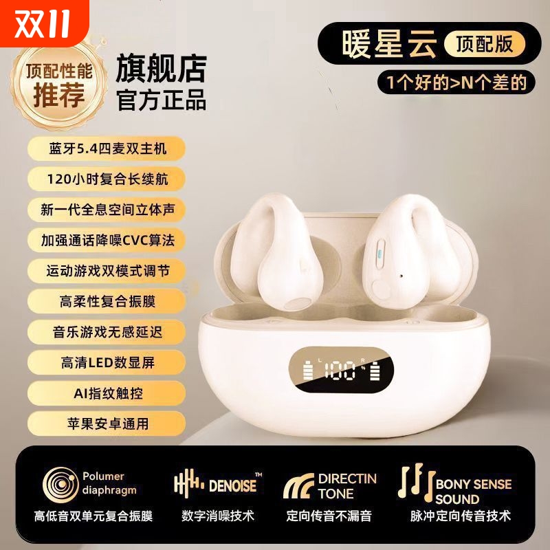 苹蓝牙耳机2025新款官方正品长续航气骨传导耳夹式无线适用华为果
