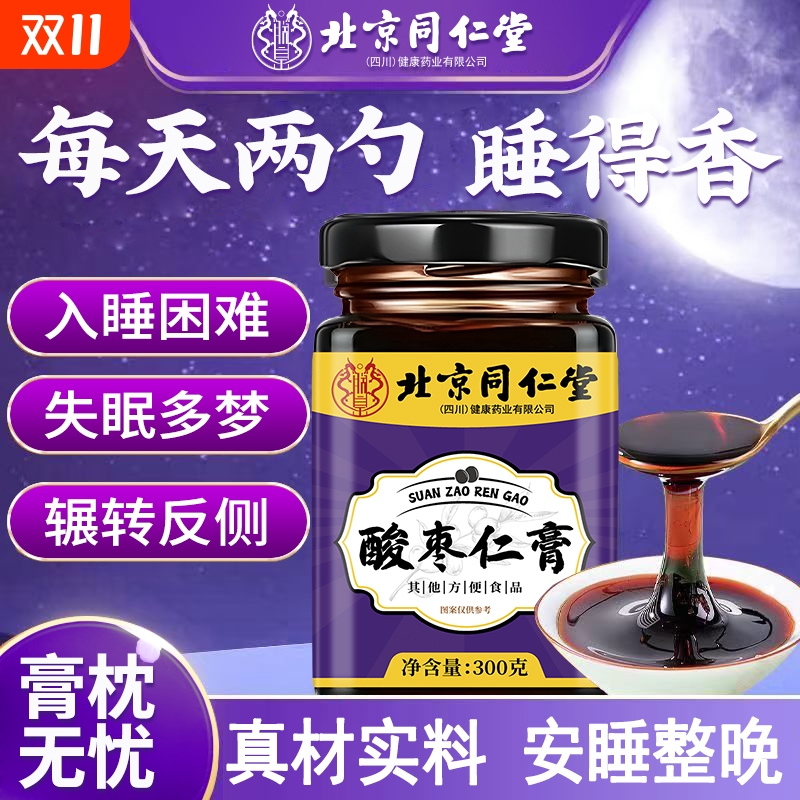 北京同仁堂酸枣仁养生膏调理睡眠舒缓情绪自然醒正宗百合茯苓汤膏