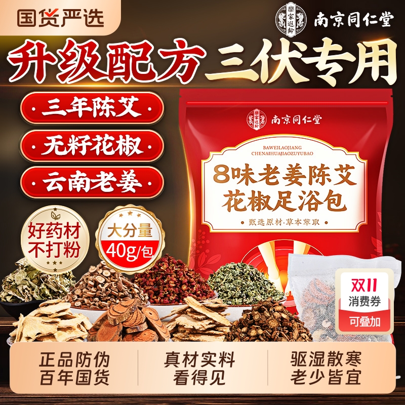 南京同仁堂泡脚药包去湿气排毒助睡眠花椒艾草叶三伏天祛湿泡脚包