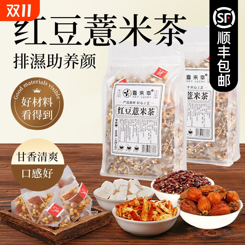 炒熟芡实赤豆薏米茶包祛湿茶红豆茯苓薏湿茶非去除湿气排养体寒毒