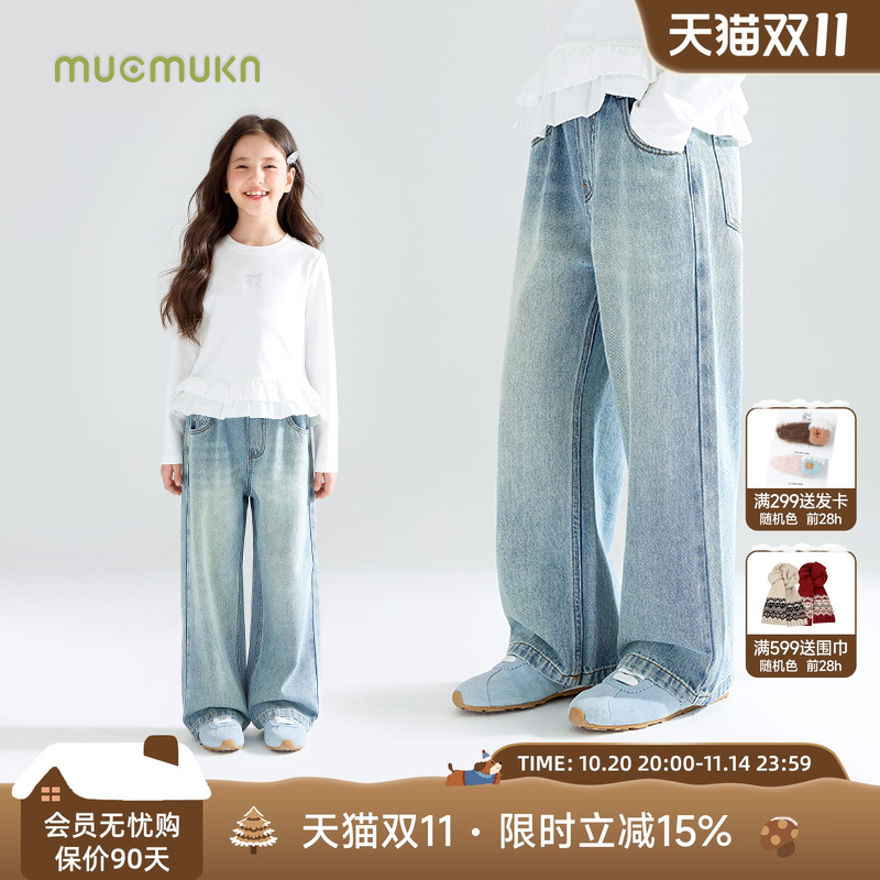 MUCMUKN木可简约百搭软软牛仔裤宽松直筒休闲裤女童裤子春秋新