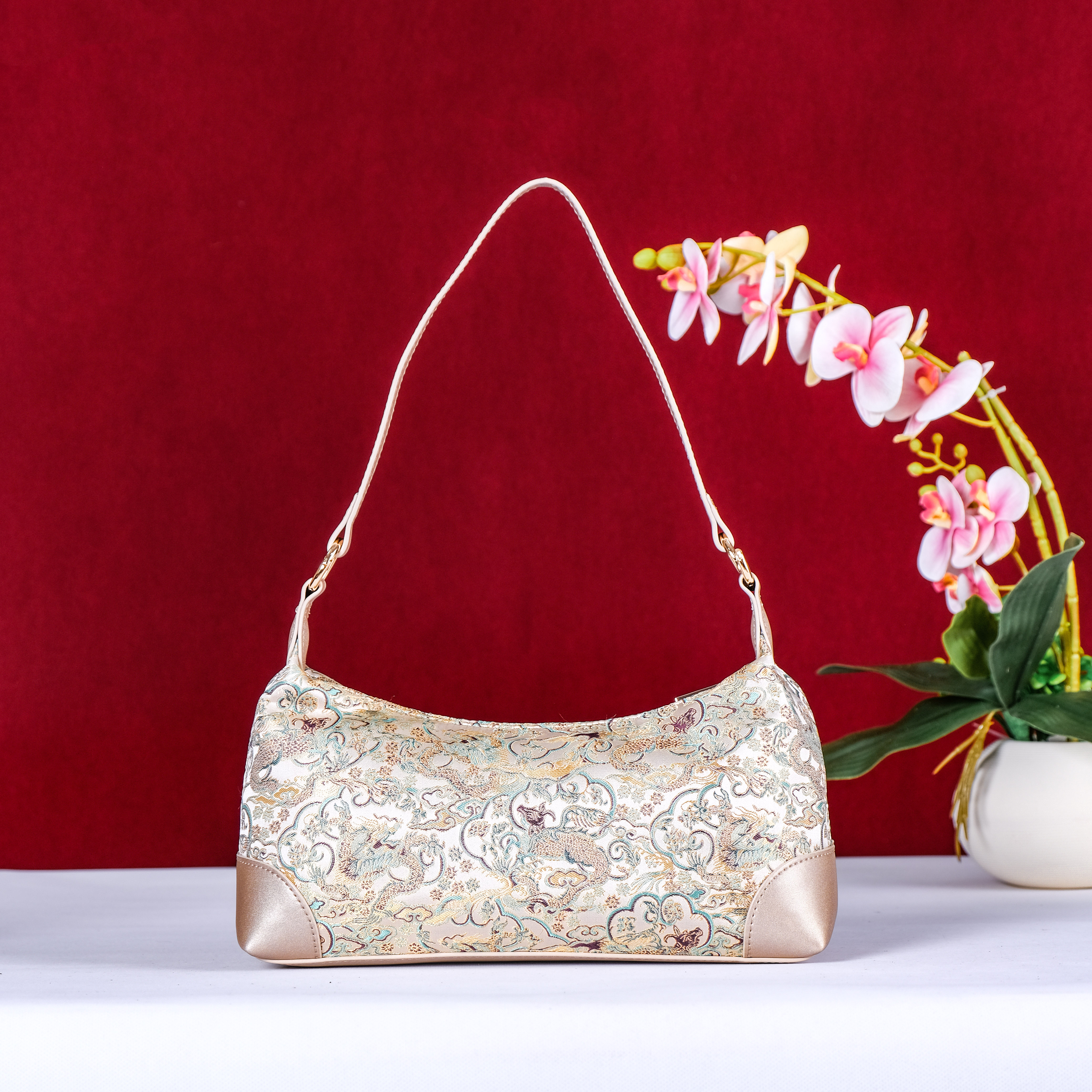 曼莎(箱包)中国风宋锦香云纱手提单肩斜挎绣花真丝真皮手提女包