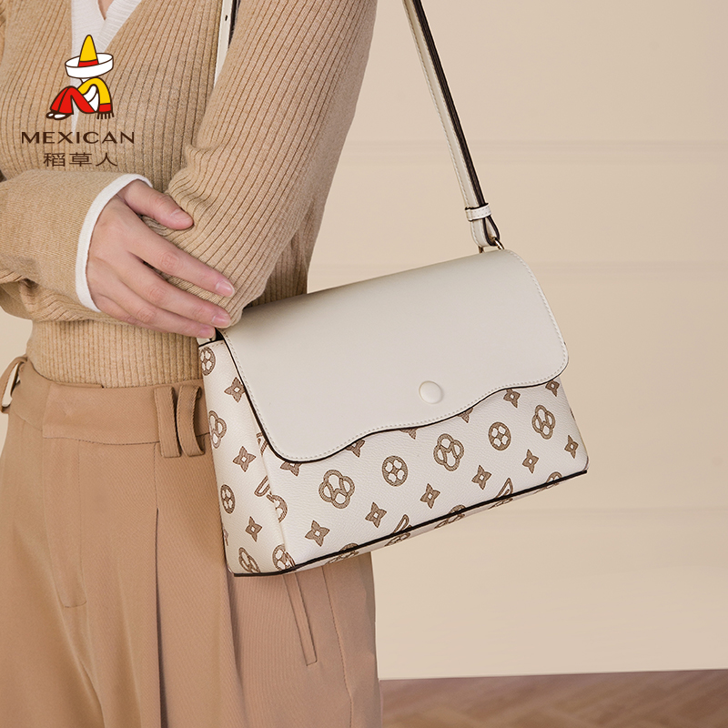 稻草人包包女士新款夏季牛皮高级感百搭手提包小众真皮单肩斜挎包