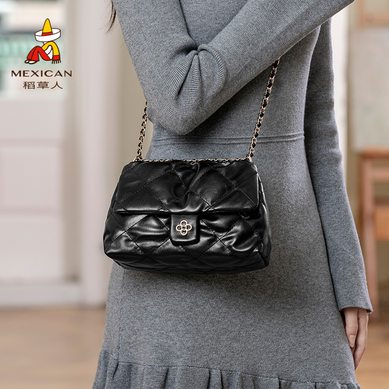 稻草人菱格斜挎包2025新款休闲包包女士单肩包简约时尚通勤包女包