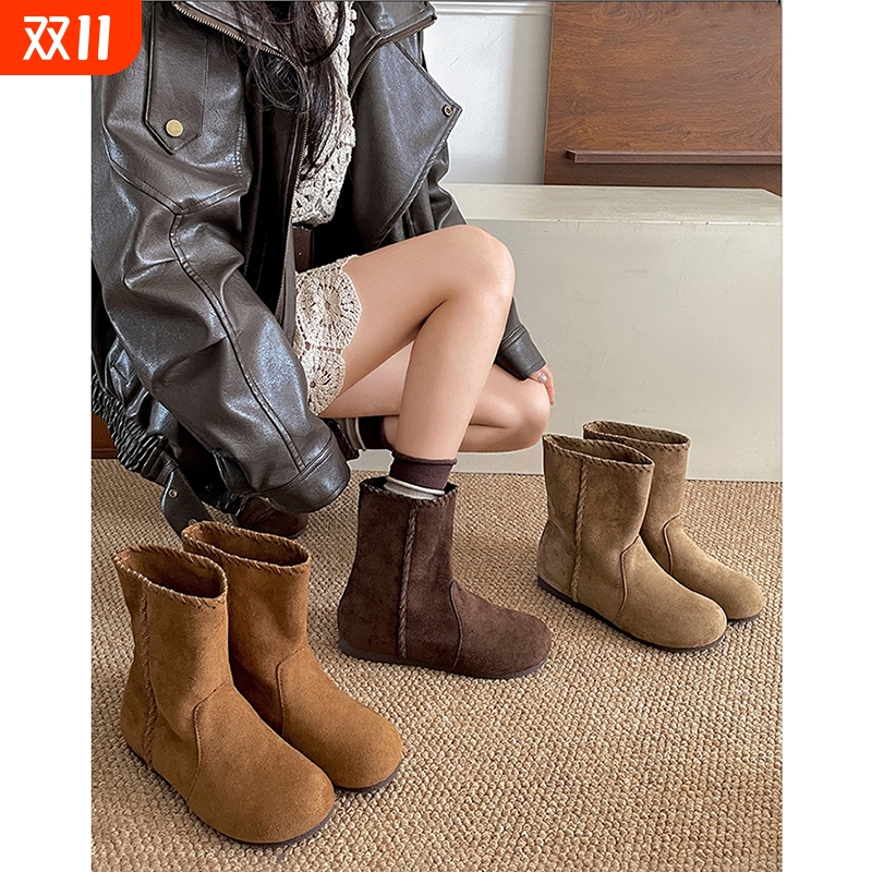 南在南方美棕色平底靴子女2025新款秋季百搭软底勃肯短靴不累脚