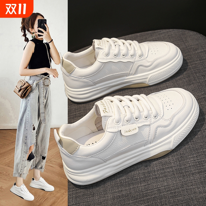 真皮女鞋2025新款春秋薄款平底不累脚小白鞋运动鞋休闲板鞋配裙子
