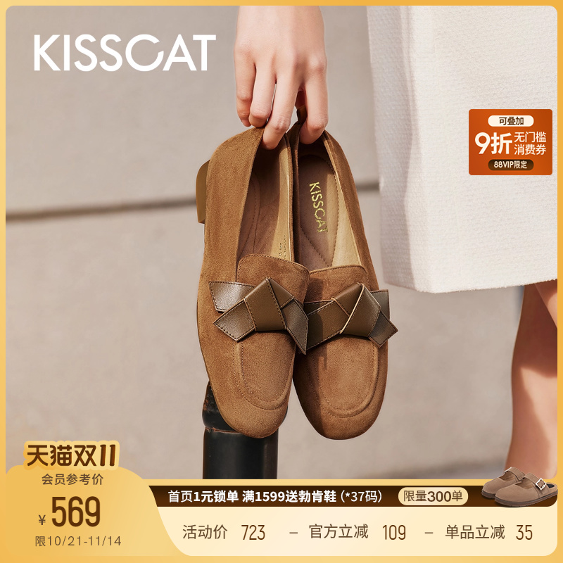 接吻猫平底复古乐福鞋