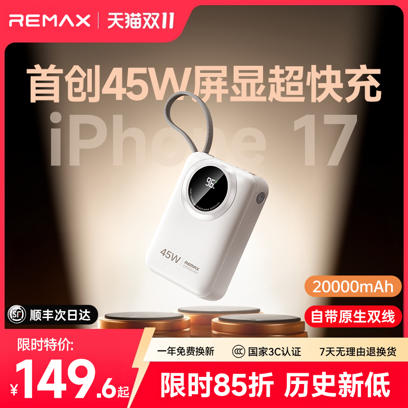【3C认证】iQOO自带线充电宝20000毫安22.5W可上飞机