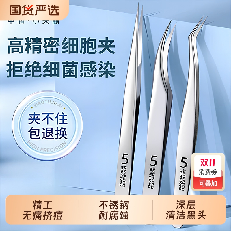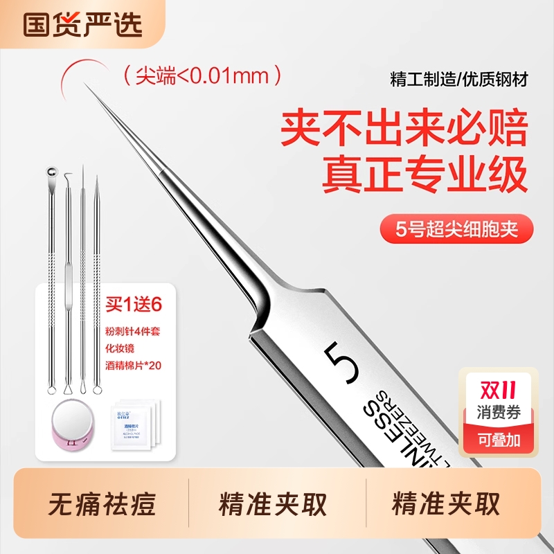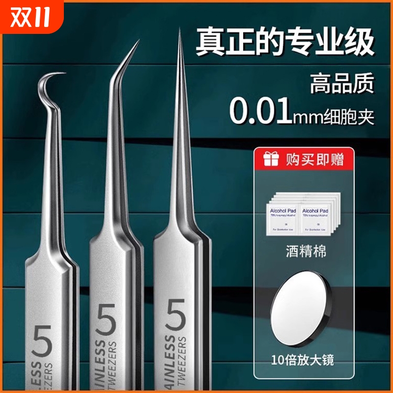 高精密细胞夹黑头超细镊子粉刺针刮闭口神器清洁痘痘清工具美容