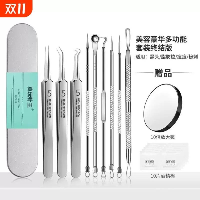 粉刺针套装去黑头铲镊子超细挤痘高精密美容院专用工具放大镜细胞